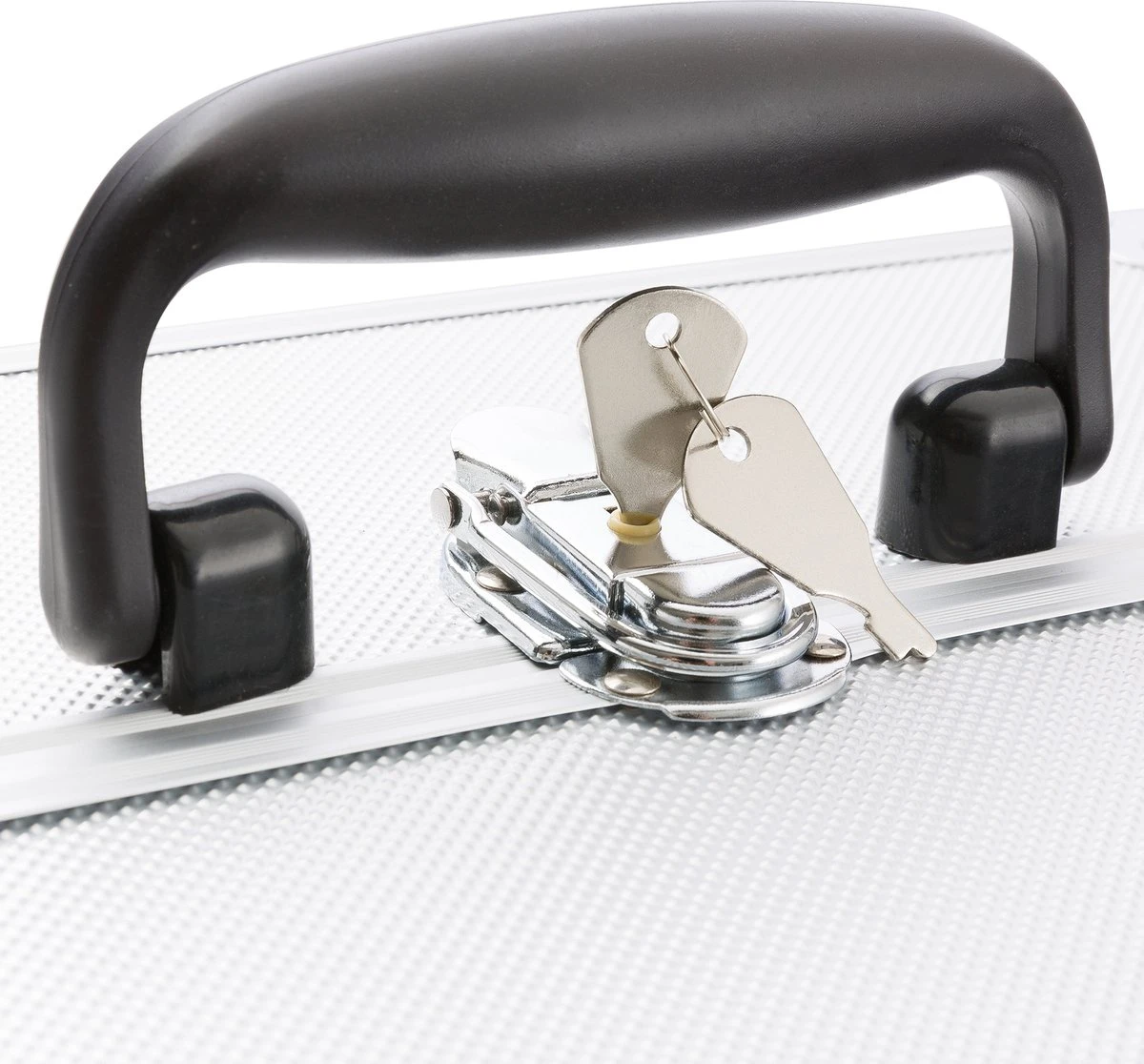De randen zijn verstevigd met glad aluminium en daarnaast zijn de hoeken afgerond. De metalen scharnieren zijn aan het frame vastgeklonken, waardoor een lange levensduur is gegarandeerd. De koffer is afsluitbaar; en de sleutels worden met de koffer meegeleverd.
