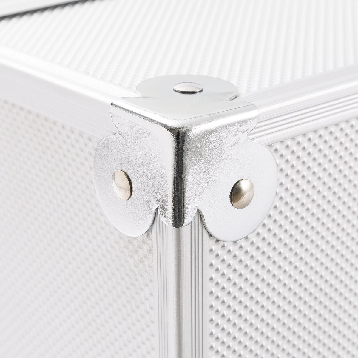 [ROBUUST ONTWERP] Robuuste en hoogwaardige beautykoffer gemaakt van veerkrachtig aluminium. De stabiliteit van de koffer zorgt voor een perfecte balans bij het vervoeren van spullen. | Voetjes op onderkant | Afgeronde hoeken beschermen de koffer tegen beschadiging door stoten.