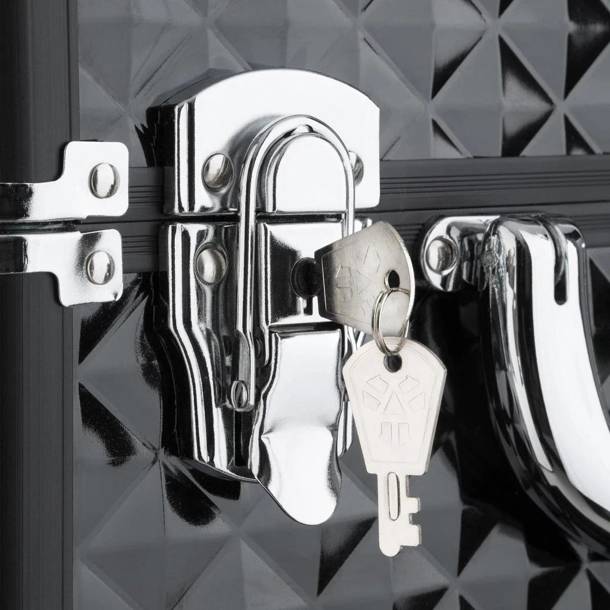 Dreamble Make-up Koffer – Make-up Trolley – Zwart – Rijdbaar – Met wieltjes – Compact – 8 vakken – Met slot