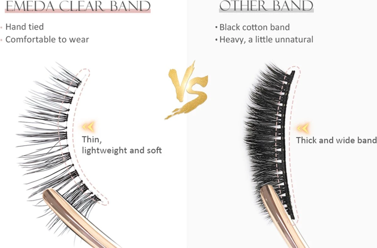 - Breng EMEDA wimperlijm aan op de hoofdsteel van de doorzichtige strook valse wimpers.