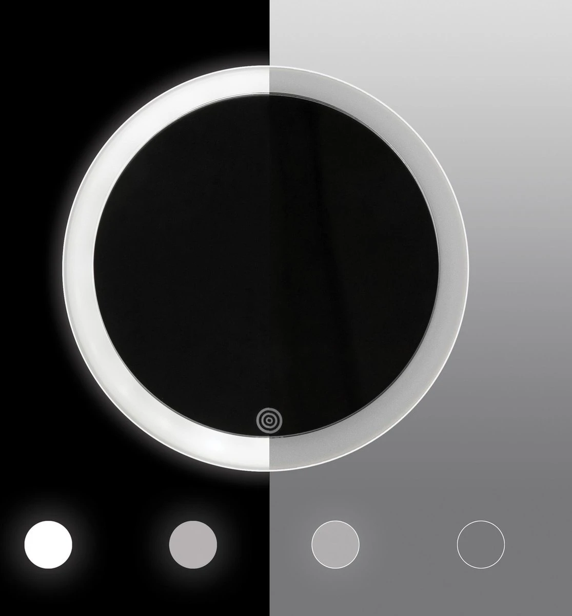 Met de HoMedics Attach & Glow make up spiegel met verlichting wordt het beeld 5x vergroot. Hierdoor wordt elk detail van je gezicht goed zichtbaar. De compacte spiegel heeft een diameter van 14,5 cm en heeft dimbare led verlichting, waardoor het epileren en opdoen van make-up makkelijker wordt. Door de sterke zuignap met magnetische grip is de spiegel geschikt voor elk glad oppervlak. De spiegel is oplaadbaar met de meegeleverde USB kabel.