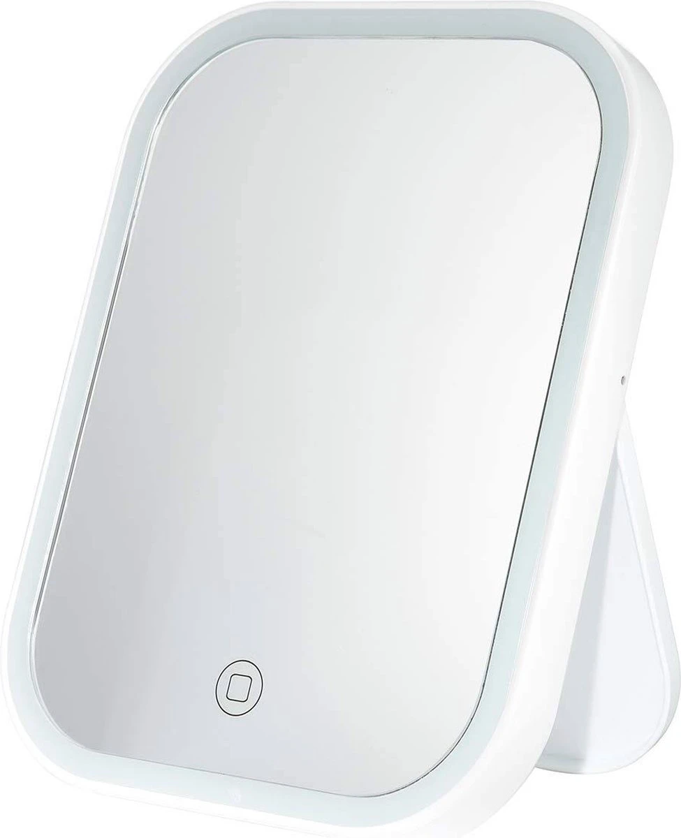 Praktische Make-up spiegel met ledverlichting zodat je goed zicht hebt wanneer je je make-up doet. De spiegel bevat een oplaadbare batterij die je kunt opladen via de USB-aansluiting. Zo zorg je dat het ledlicht blijft werken. En nog handiger: je kunt overal je make-up doen met goed licht, omdat je geen stopcontact nodig hebt. Zo heb je altijd het beste licht om je make-uplook op z’n best te maken.