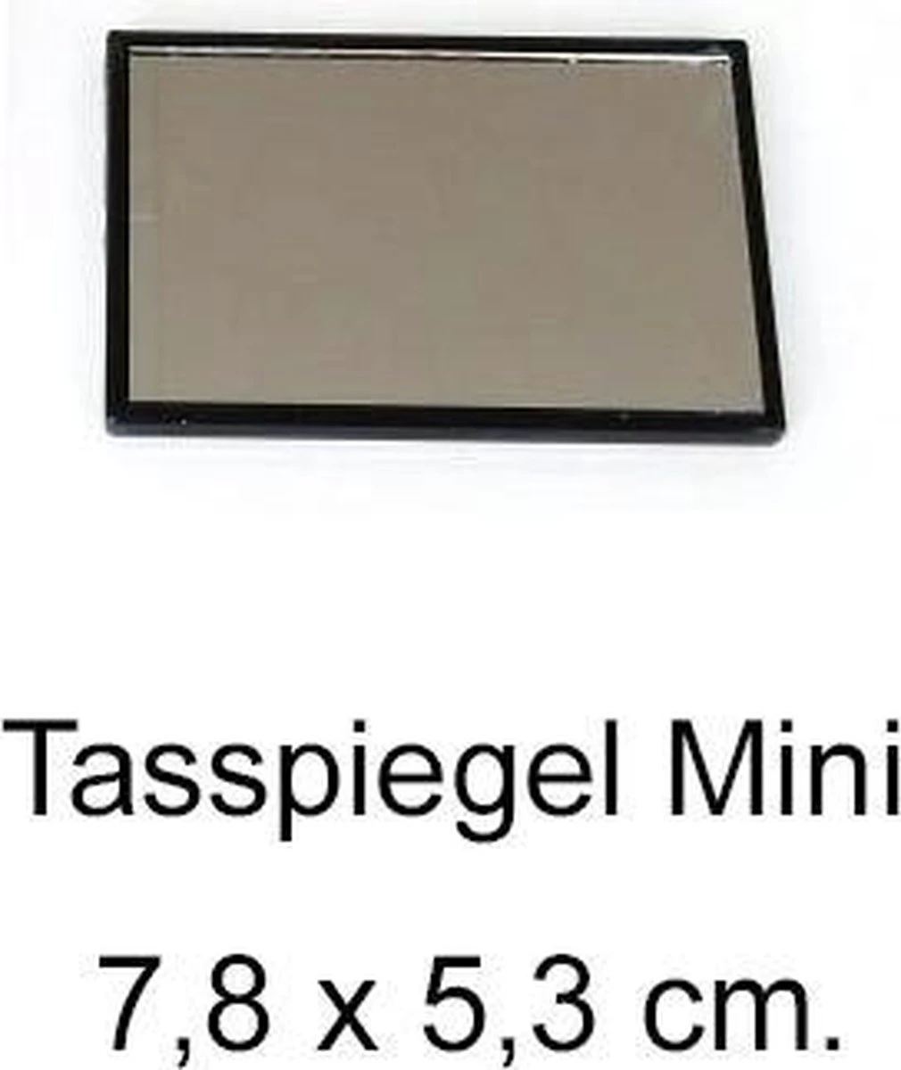 Deze mini tasspiegel is makkelijk mee te nemen, heeft 1 spiegelkant, de achterzijde is uitgevoerd in zwart kunststof.