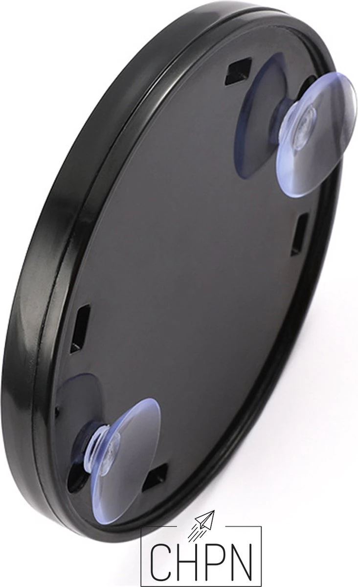 De spiegel heeft een diameter van 10 CM en kan opgehangen worden door middel van de zuignapjes aan de achterkant.